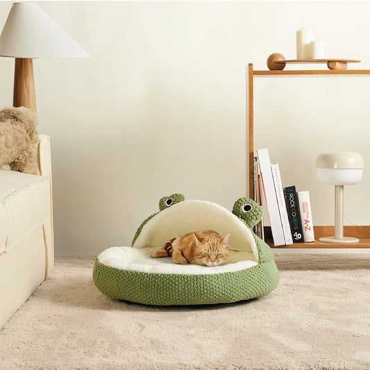 Cama Rana Nido Para Mascotas Terciopelo Suave Verde Talla S